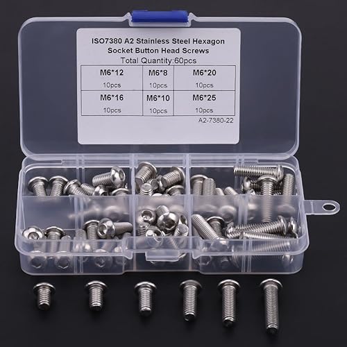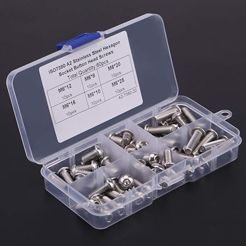 Oumefar Vite a esagono incassato 60 pezzi M6 304 in acciaio inox a testa bombata Viti a esagono incassato Kit assortimento di elementi di fissaggio con scatola di immagazzinaggio