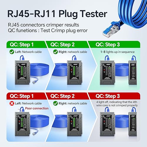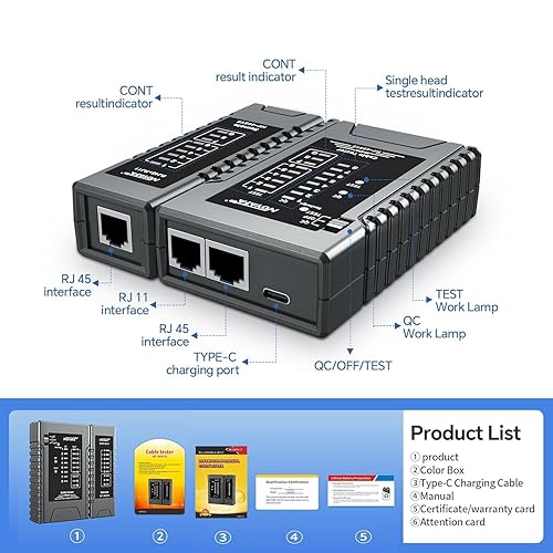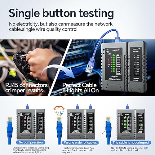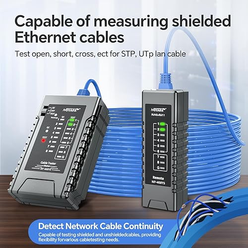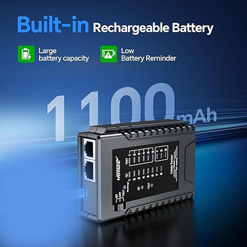 NOYAFA Tester di rete, RJ45, tester per cavi di rete QC LAN per RJ45, RJ11, RJ12, tester di continuità del cavo Ethernet, CAT3 CAT5 CAT6, tester per cavi POE