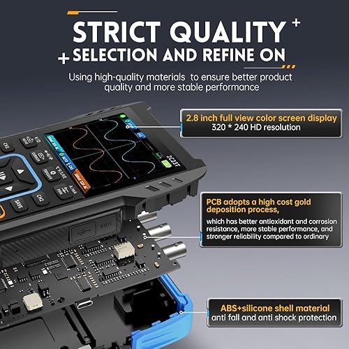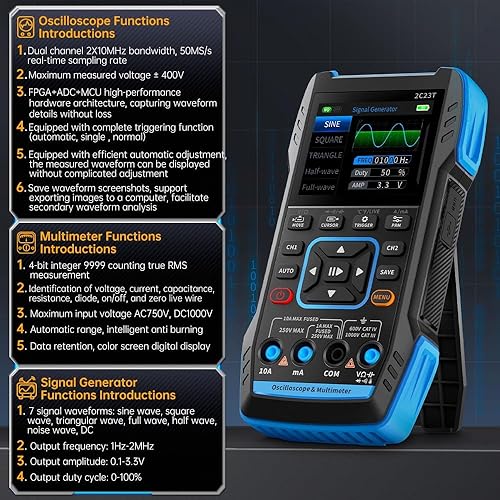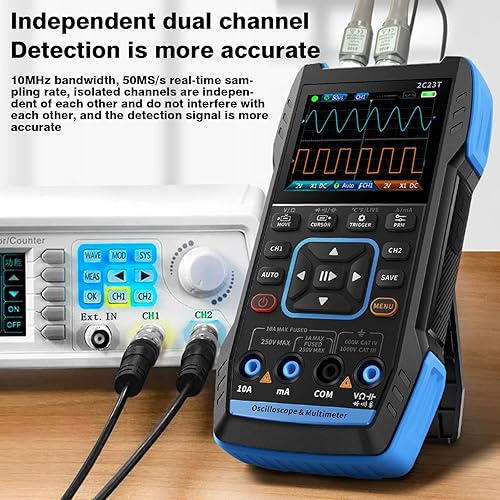 Oscilloscopio Digitale,Oscilloscopio Portatile 3 in 1 Multimetro 9999 Conteggi Elettronica Automobile Tester Strumento Elettrico,Larghezza di Banda 10 MHz Frequenza di Campionamento 50 MSa/s
