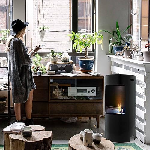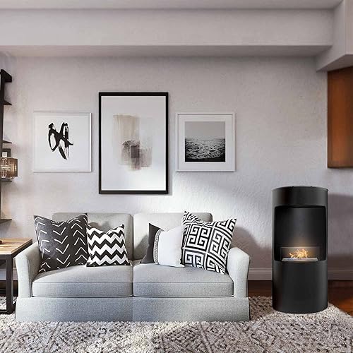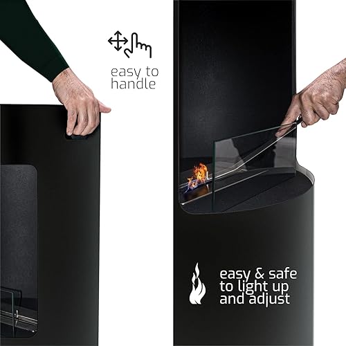 Giulio Cesare - Caminetto a bioetanolo da terra con 1 bruciatore da 1.5L. Camino a bioetanolo da appoggio in acciaio inox e vetro temperato. Disponibile in bianco o nero. Ø40x80 cm (Nero)