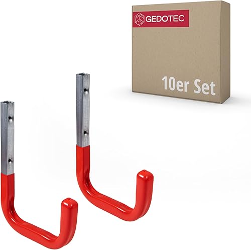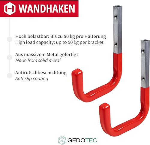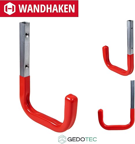 2 Stück GedoTec Gancio da parete con Gommatura rosso Porta attrezzi Gancio per tutti gli usi acciaio 150 x 210 mm Acciaio zincato Forza portante 50 kg Gancio universale gancio/Garage ganci - 2 Stück