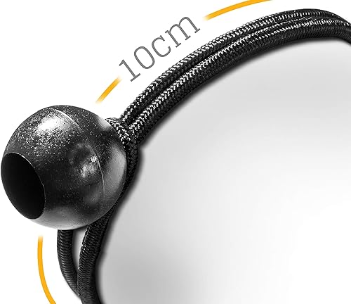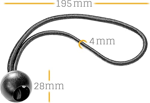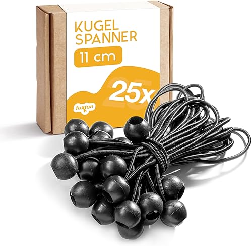 Fuxton 25 Elastici Certificati TÜV Con Sfera (Nero 11 cm) per Tende, Teloni, Manifesti, Tenditori, Cinghie di Espansione, Supporto Telone, Gomma per Tenda