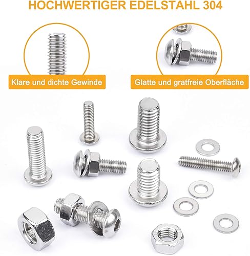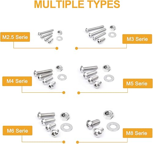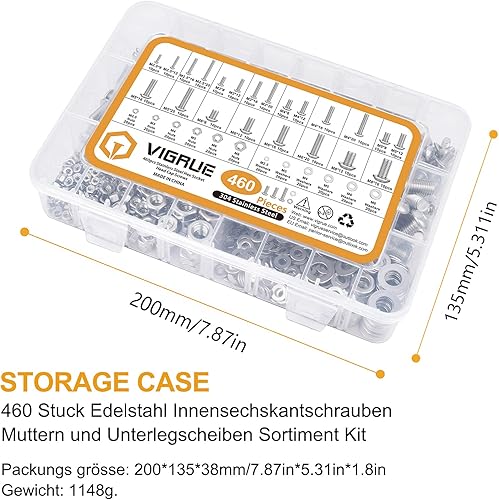 Set di 460 viti e dadi, M2.5, M3, M4, M5, M6, M8, viti a esagono incassato in acciaio inox, dadi e rondelle, set con scatola e chiavi
