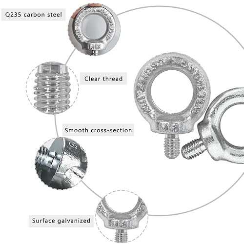 Bulloni ad di sollevamento 5 pezzi, golfari in acciaio al carbonio Q235 zincati Golfari di sollevamento con filettatura profonda per industria, industria manifatturiera automobilistica M8.