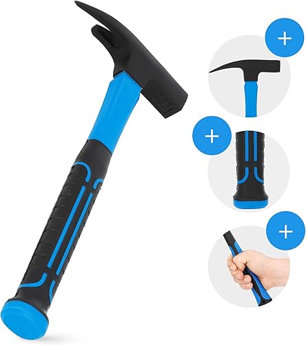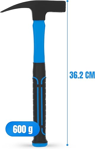 Martello da Carpentiere 600 g Testa Forgiata in Acciaio Manico in Fibra di Vetro Ergonomico Professionale Magnete Falegname Artigianale Tetti Solido Comodo