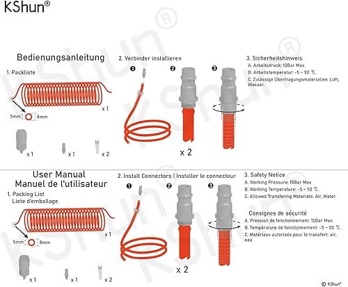 10.5m Spring Air Hose Spirale Bobina Arancione ODxID 8x5mm Accoppiatori Rapidi Europei SP PP Inclusive Compressore Tubo Trasferimento Aria Acqua
