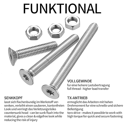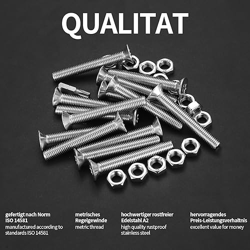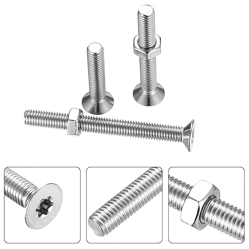 M8 Bulloni e Dadi Set, Set Bulloni Viti a Testa Svasata, Viti Bulloni a Testa Svasata Torx, Viti a Testa Cilindrica Piatte Torx con Dadi in Acciaio Inossidabile, con Torx Punta (M8x60mm(15Pcs))