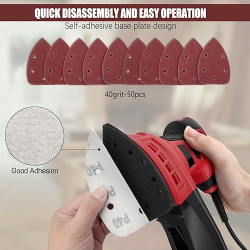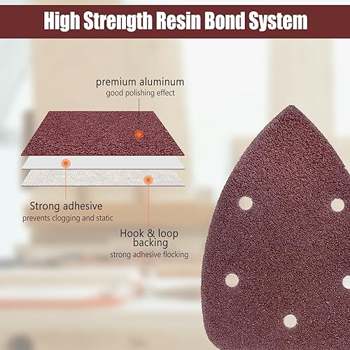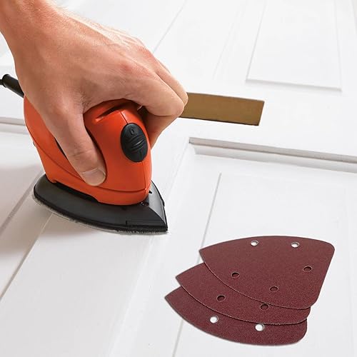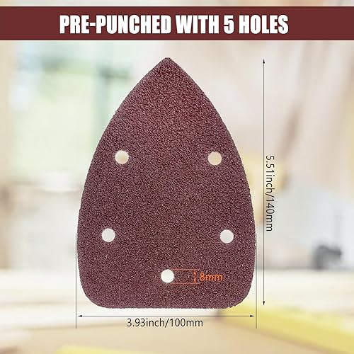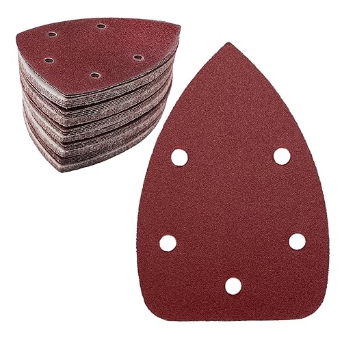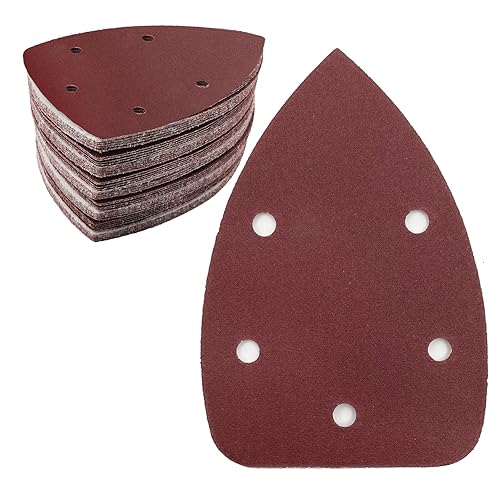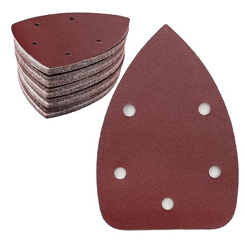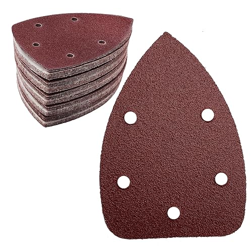 50 pezzi di carta vetrata triangolare, grana 80, 5 fori, in velcro, carta vetrata a delta, per smerigliatrice triangolare, 140 x 100 mm