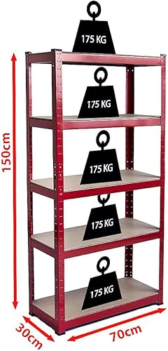 Home Discount 5 Ripiani Strato scaffali Rack scaffali Heavy Duty Kitchen Garage capacità 875 kgs, Standard, Rosso