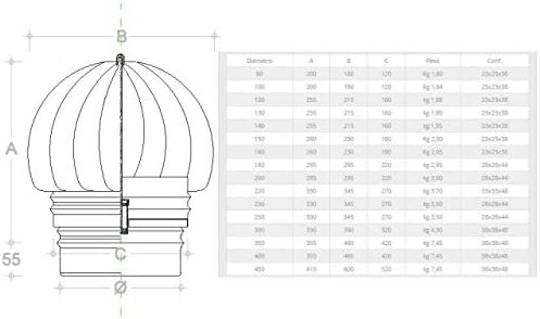 Fumaiolo radiante eolico inox base tonda (120mm)