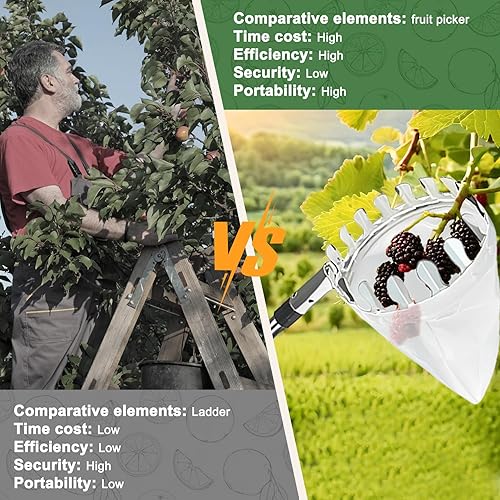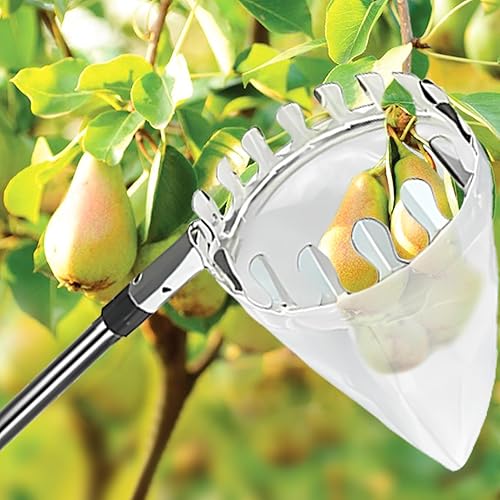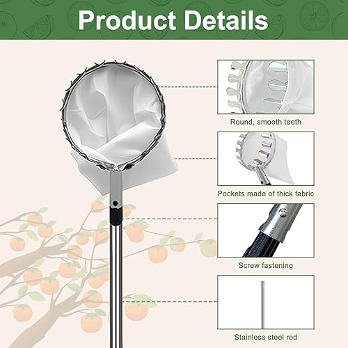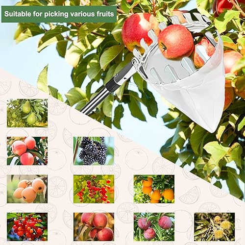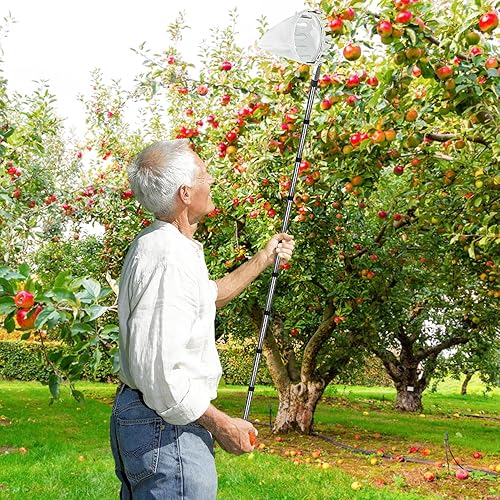 Idota Raccogli Frutta Telescopico 4M Raccogli Frutta da Albero con Asta Telescopica e Borsa Diametro 16 cm, Raccogli Frutta per Ciliegie Mele Pere