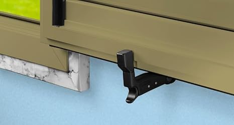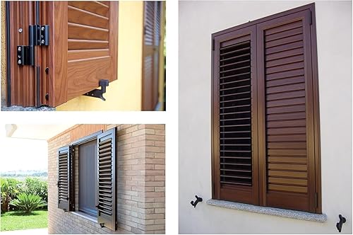 Kit 2 Pezzi Ferma Imposte Regolabile Tipo Grillo - Sistema Automatico di Ancoraggio per Infissi da 40-55 mm | Blocca Scuri e Persiane | Tasselli Integrati 6x70 mm, Nero e Bianco (Nero)