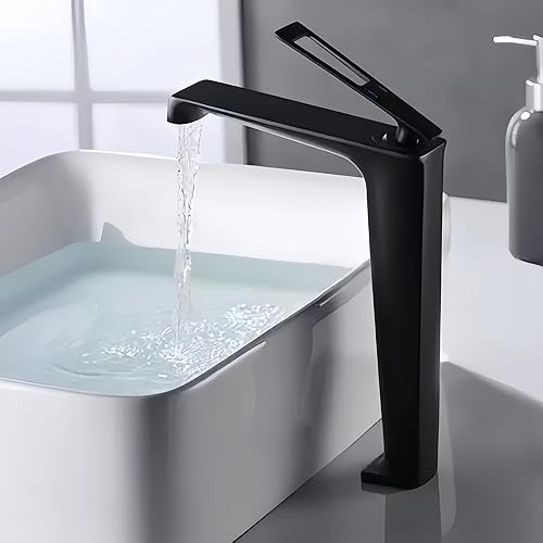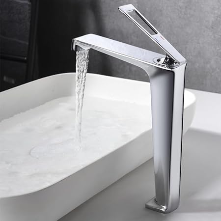 Miscelatore Lavabo Bagno Alto a Cascata - Rubinetto Per Acqua Fredda E Calda, Design Elegante