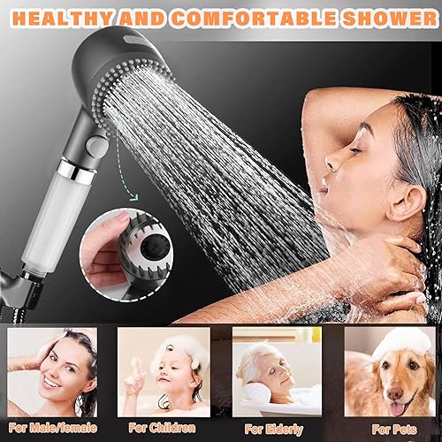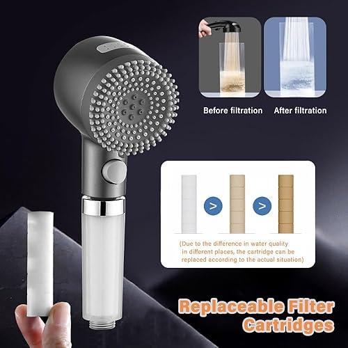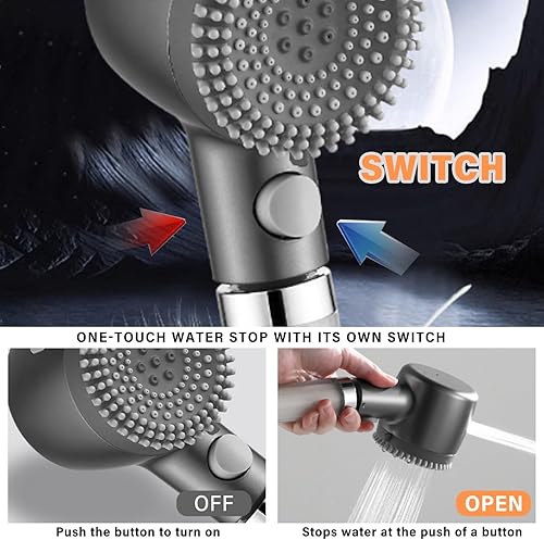 JINYOMFLY Soffione Doccia Anticalcare con Filtro, Soffione Doccia ad Alta Pressione con 4 Tipi di Getto, Doccino Pressurizzato, Doccino Pressurizzato, Cipolla Doccia (Grigio 2)