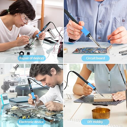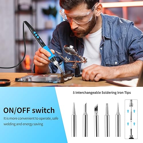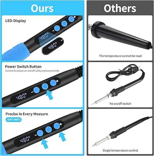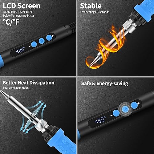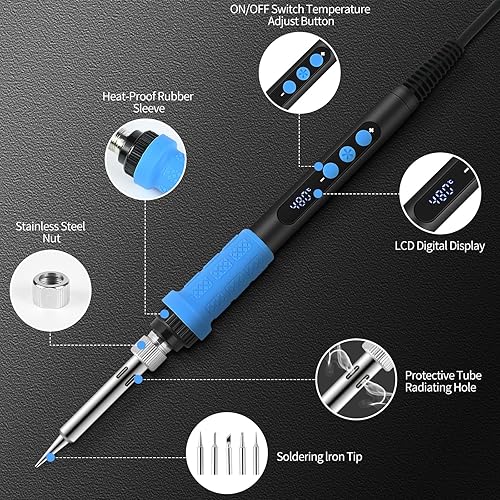 Kit Saldatore a Stagno con LCD e Temperatura Regolabile (180-480°C), Stagnatore Elettrico con Interruttore ON/OFF, 5 Punte per Saldare, Pompa Dissaldante, Filo per Saldare, Pinzette