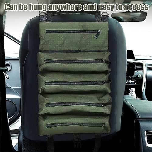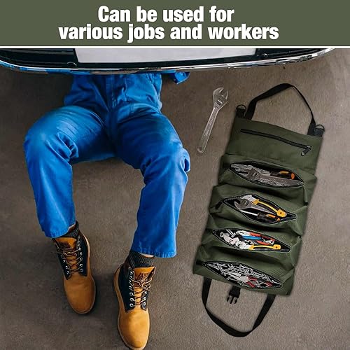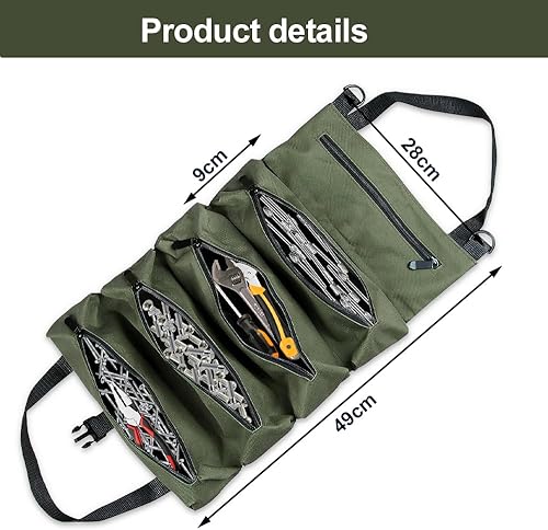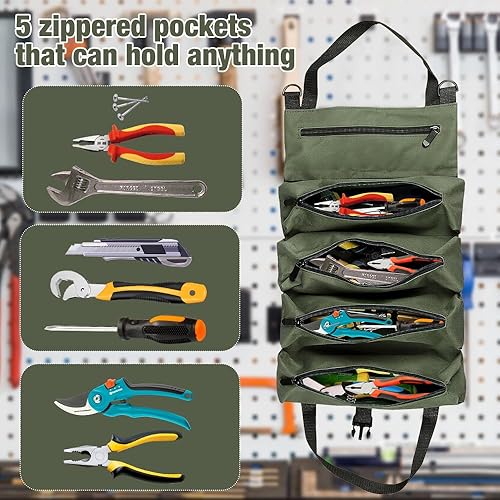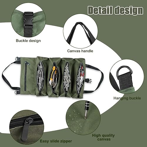 Borsa Porta Attrezzi in Tela, Borsa per Attrezzi Arrotolabile con 5 Tasche con Zip, Borsa Multiuso per Attrezzi, Tela Roll Up Bag Borsa Porta Attrezzi Lavoro Per Elettricista Idraulico (Verde)