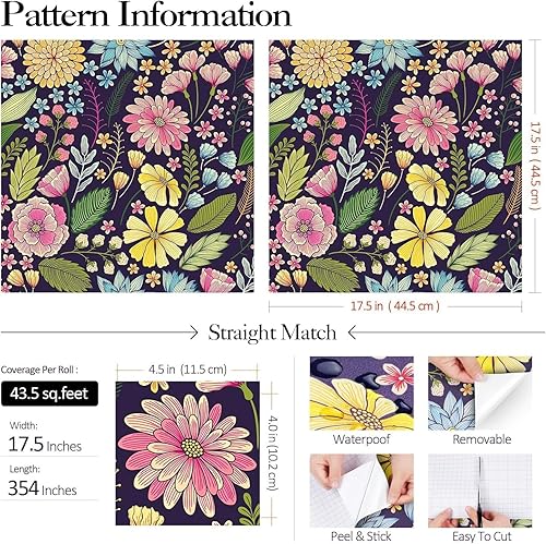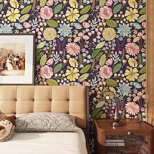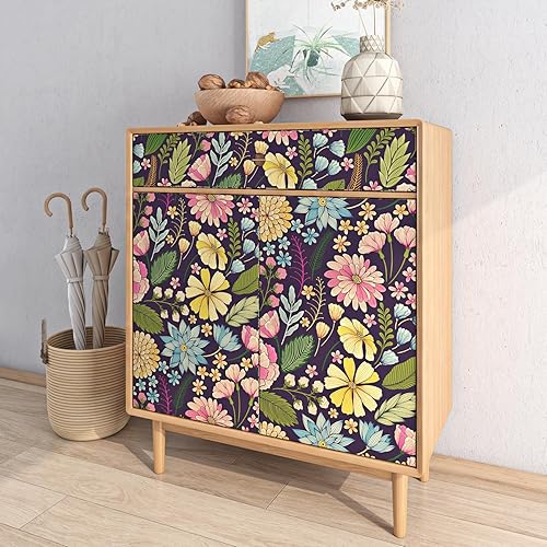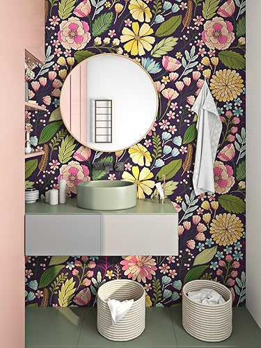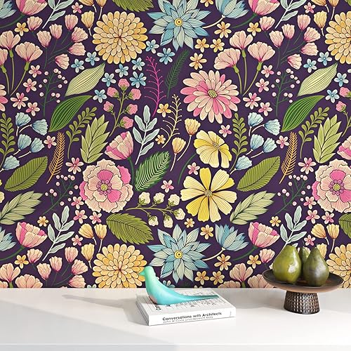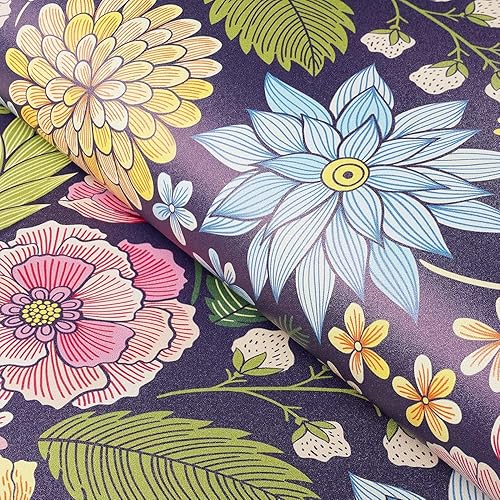 FunStick Carta da Parati Floreale Carta da Parati Adesiva Muro Floreale Viola Camera da Letto Impermeabile Pellicola Adesiva per Mobili Foglie Tropicali Carta Adesiva Armadio Tropicale Lilla 44.5CM×3M