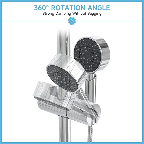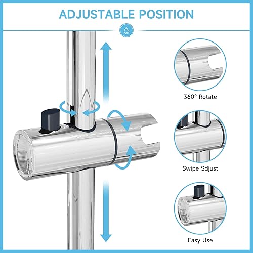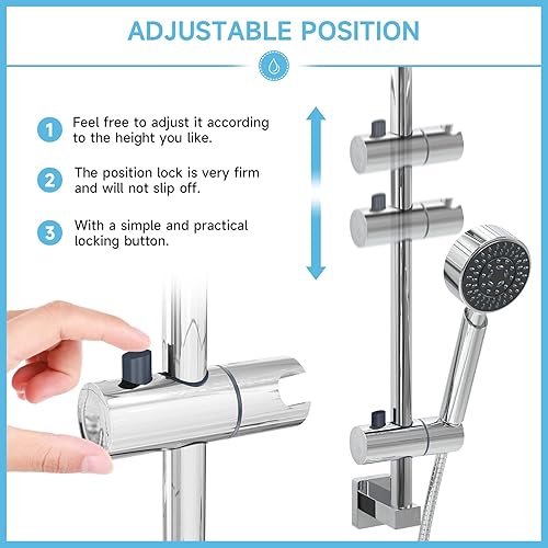Asta Doccia, Asta Saliscendi Doccia Acciaio Inox con Supporto Soffione Doccia Regolabile Fisso in Altezza e Angolazione, Muro Regolabile Colonna Doccia Barra Scorrimento Doccia 61cm, Cromo