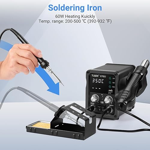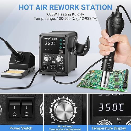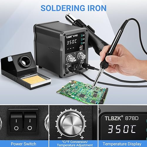 TLBZK 878D 2-in-1 Stazione di Saldatura ad Aria Calda Kit per Riassunto, Pompa Desalding, 5 Punte di Saldatura, 3 Ugelli ad Aria Calda, Pinzette, Estrattore IC