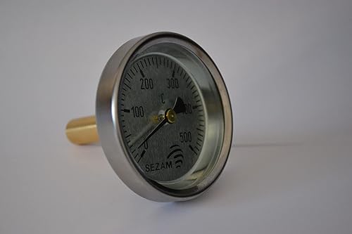 Termometro per porte della stufa a legna, scala da 0 a 500 °C, diametro sfera 63 mm, guaina da 50 mm