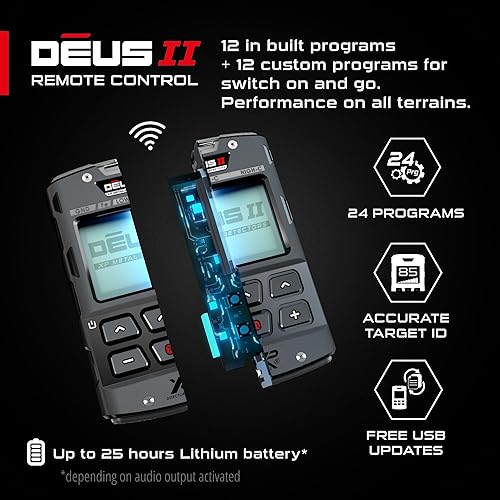 XP Metal Detectors telecomando senza fili per Deus II, resistente agli urti e impermeabile a 20 m (IP68) - per parametri interni - telecomando con display LCD retroilluminato (D2-RC)