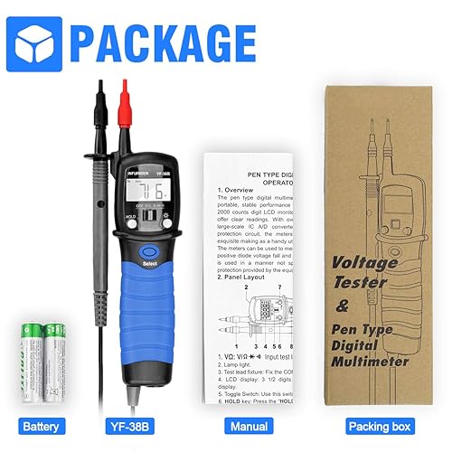 Palmare Penna Multimetro Digitale INFURIDER YF-38B Ohm Volt tester Automatica per Continuità, Diodi, Tensione AC/CC, Resistenza con Display LCD Retroilluminato(blu)
