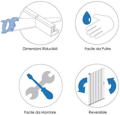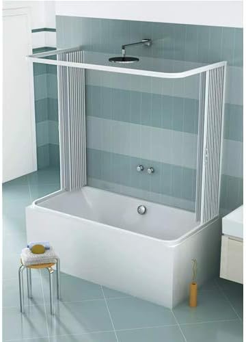 Box Sopravasca a 3 ante 70x150x70 cm modello Julia riducibile con apertura centrale a soffietto pannelli semitrasparenti profili di colore bianco.