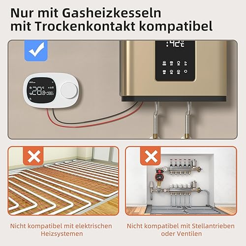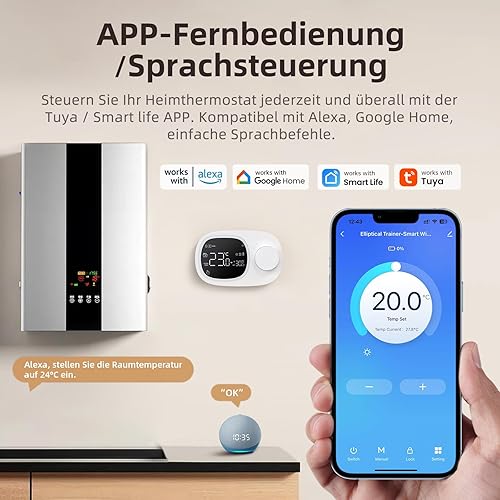 Smart Wi-Fi Termostato per caldaia a gas con riscaldamento e raffreddamento.Termostato da parete, funzionamento a batteria, montaggio a parete.Supporta Alexa, Google Home controllo vocale e