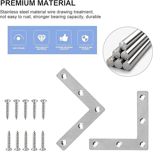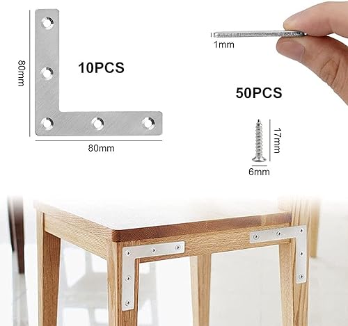 10 Pezzi Staffa angolare piatta a forma di L, Staffa Angolare Piatta, Angolari Piatta Gradi Supporti, Squadrette Angolar a Forma di L, per mobili in legno, armadi, tavoli e sedie