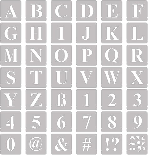NAKLEO Lettere & Numeri Stencil Plastica Riutilizzabile - Times Roman Maiuscola Carattere - 42 Schede Personaggio Alfabeto Letteratura Arte Artigianato Modello Pittura Muro Legno Tessuto (7 cm)