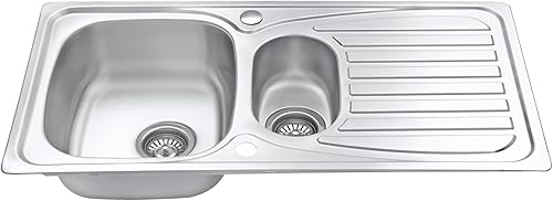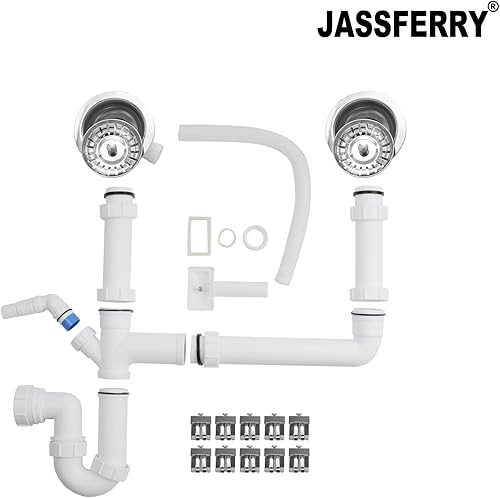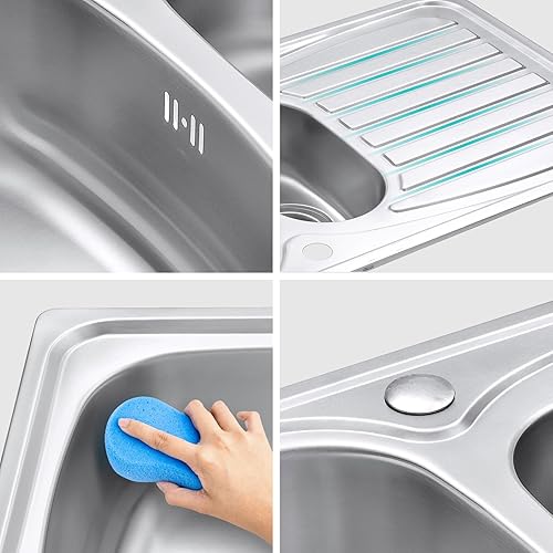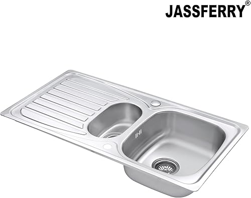 JASSFERRY Lavello da cucina in Acciaio Inox Spazzolato, scolapiatti reversibile Lavandino, con set di rifiuti, una vasca e mezzo