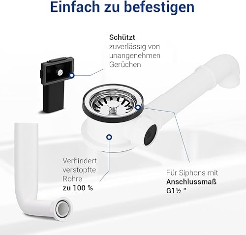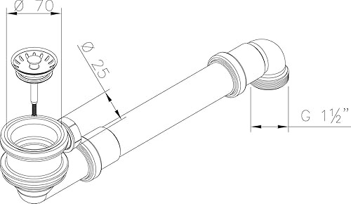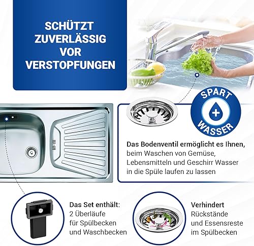 Scolo per lavello, valvola a cestello, 70 mm, con creatore, troppopieno, scarico da cucina, lavello con troppopieno, scarico lavello