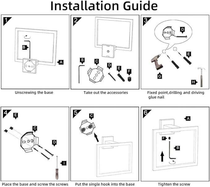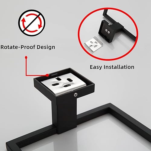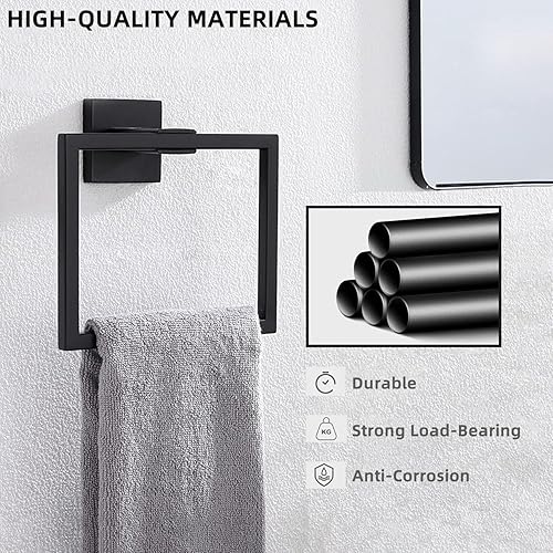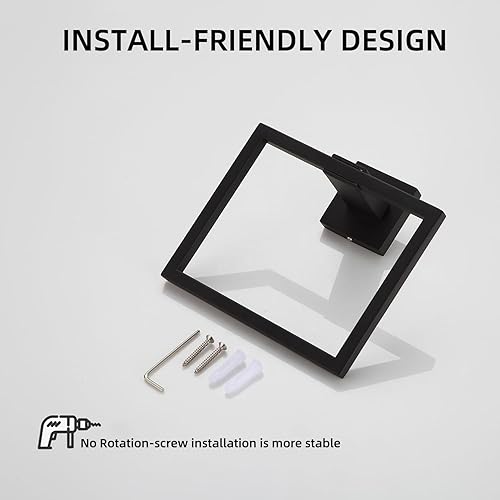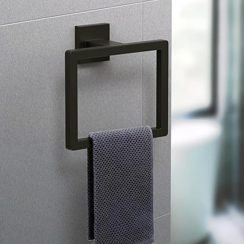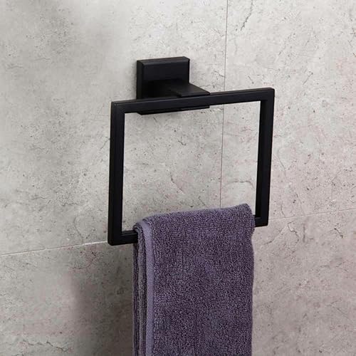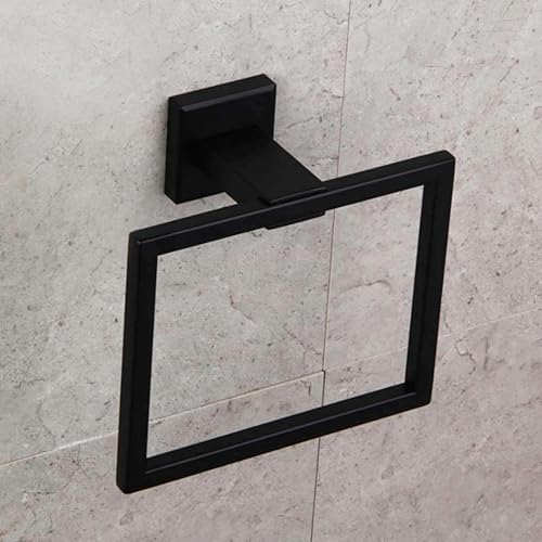 Portasciugamani ad anello quadrato in acciaio inossidabile per bagno Vanity Towel Hanging Ring Porta asciugamani per bagno Porta asciugamani da parete - Anello per asciugamani nero