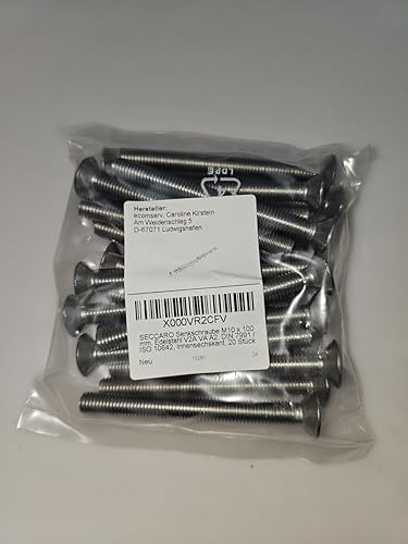 Vite a testa svasata SECCHARO M10 x 100 mm, acciaio inox V2A VA A2, DIN 7991 / ISO 10642, esagono incassato, 20 pezzi