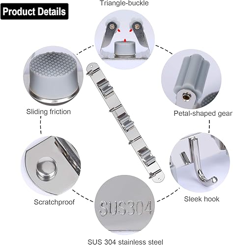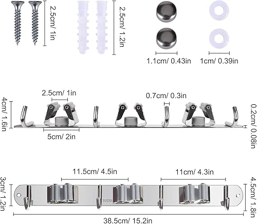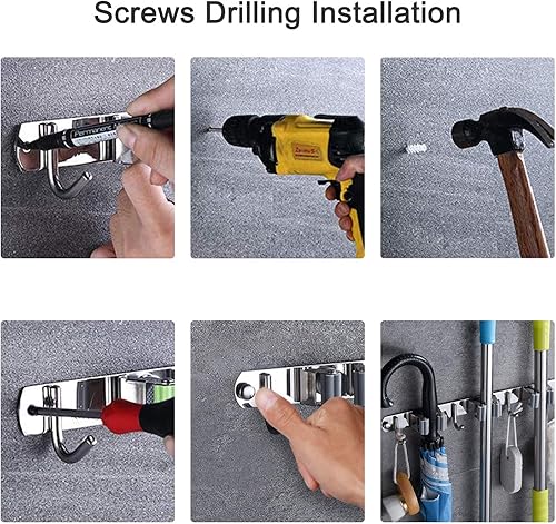 Portascope da Muro 3 Posti Portaspazzole da Muro e 4 Ganci Salvaspazio in Acciaio Inossidabil per Bagno o Cucina Giardino