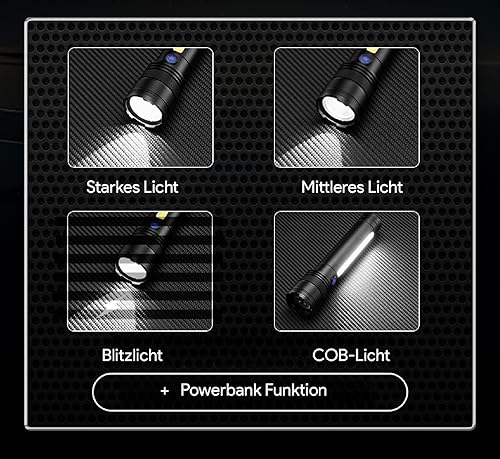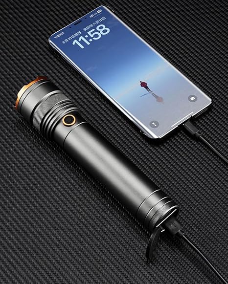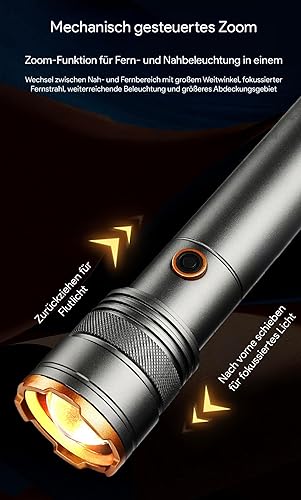 Torcia a LED in alluminio, estremamente luminosa, ricaricabile USB-C, mini torcia zoomabile con 4 modalità di luce, impermeabile e utilizzabile anche come power bank, perfetta per campeggio,
