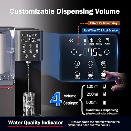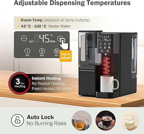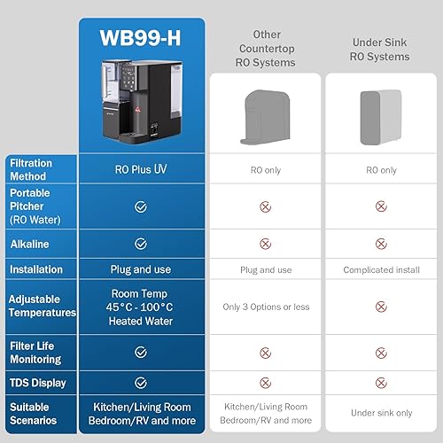 WB99 Sistema a osmosi inversa da banco, filtro alcalino per acqua RO con caraffa portatile, elementi certificati NSF/ANSI 58, monitoraggio TDS e durata del filtro, nessuna installazione