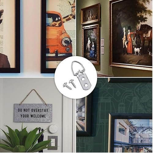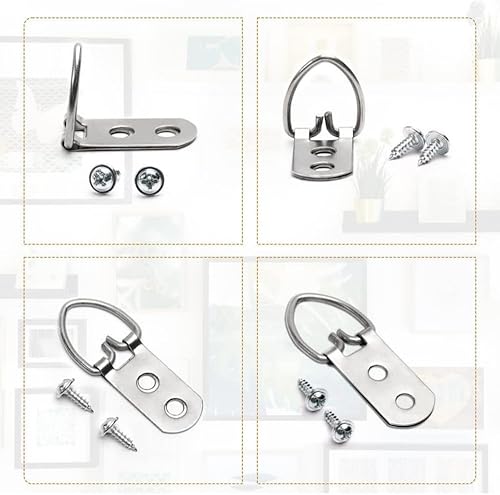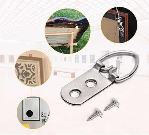 50 ganci ad anello a D, ganci per cornici con anello a D, doppi fori per appendere con viti, anelli a D, ganci per quadri, foto, opere d'arte
