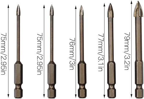 5 Pezzi Punte Trapano Carburo di Tungsteno, Punta Vetro Trapano, Punte da Trapano a Triangolo per Vetro Legno Mattoni Cemento Piastrelle Plastica(3/4/5/6/8mm)