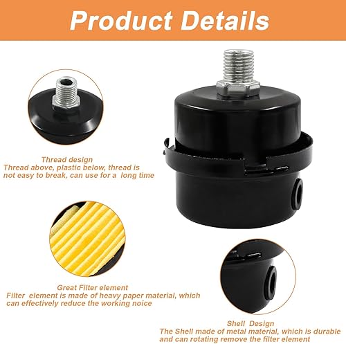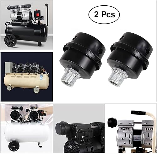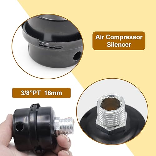 2 Pezzi Silenziatore Compressore Aria a Filetto, Silenziatore per Filtro Aria Nero in Metallo, 3/8' 16MM, Silenziatore Compressore Aria a Filetto, per i Filtri dei Compressori D'aria
