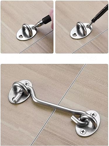 4PCS 12 Pollici Gancio Finestra Occhio Gancio da Cabina e Finestra Gancio e Occhio in Acciaio Inox Chiusure per Porta da Fienile,Serratura per Cabina/Porta/Finestra con Viti