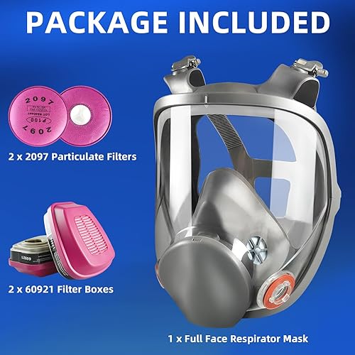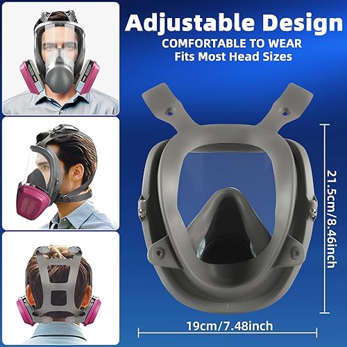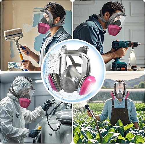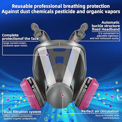 Maschera Antipolvere Semimaschile con Filtro, Maschera Antigas Riutilizzabile con Occhiali Protettivi, Mascherine Protettiva per Saldatura, Verniciatura, Prodotti Chimici, Vapori, Polvere, Levigatura
