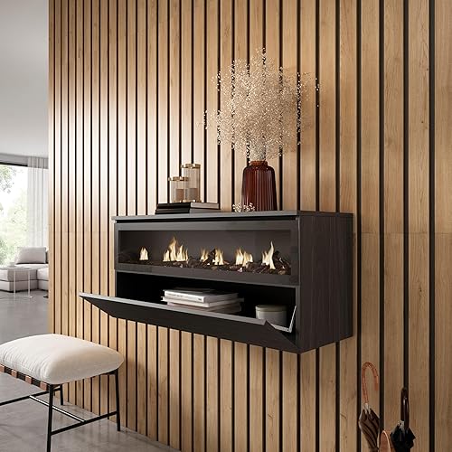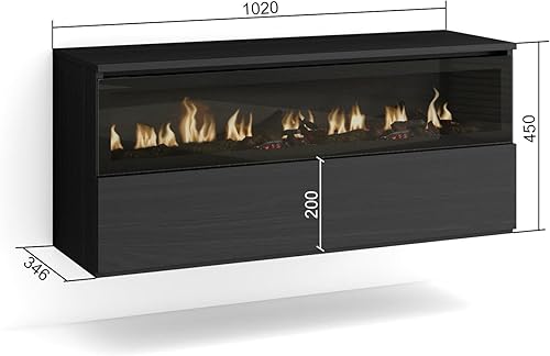 Caminetto elettrico LED | Effetto Fiamma Realistico | 102x45x35cm | 1 apertura, 1 porta | Camino elettrico | Sospeso, da appendere | Stile moderno | Nero