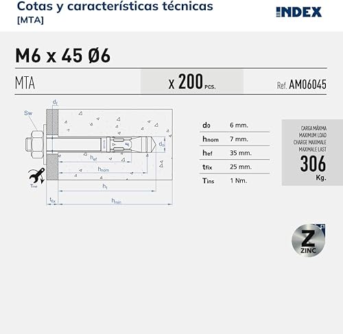 AM10070 - Tirante maschio MTH omologato, zincato, 10 x 070, confezione da 100 pezzi