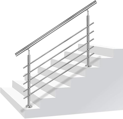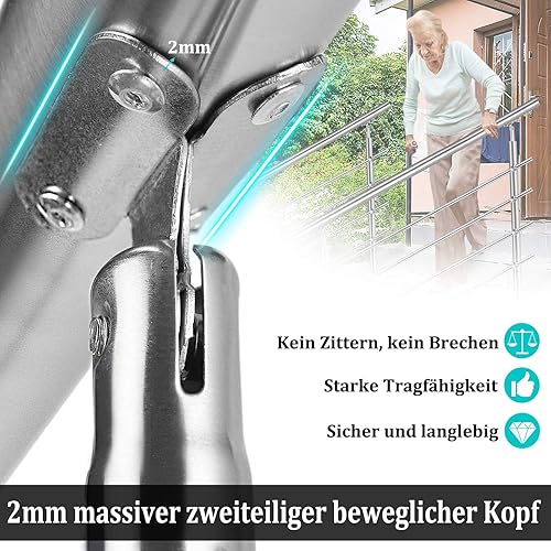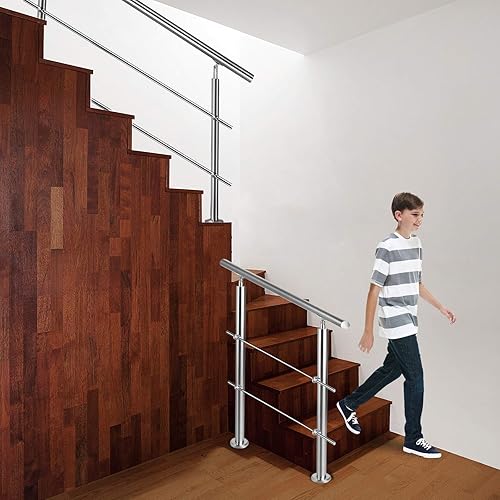 Corrimano da 80 cm, ringhiera per scale, Ø 42 mm, barre per ringhiera in acciaio inox, 3 barre trasversali, ringhiere per terrazze, montaggio a pavimento, kit di montaggio per interni ed
