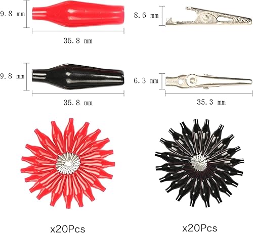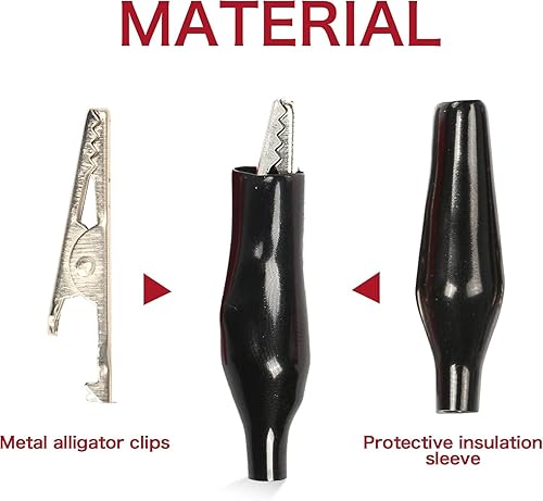 Morsetti a coccodrillo in rame, 44 mm, rosso, 10 nero, 10 morsetti di prova elettrici con isolamento protettivo, in rame, alligatore elettrico