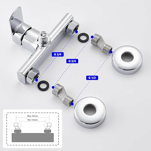 Rubinetto per doccia, miscelatore monocomando per doccia, montaggio a parete, miscelatore per doccia, rubinetto a parete, miscelatore monocomando in ottone, cromato, erogatore G1/2