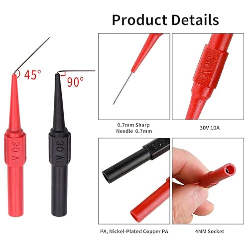 Puntali Tester per Multimetro, 20 pezzi Prova Multimetro Isolato per Misurazioni Elettriche Precise, 0.7mm Rosso e Nero per Applicazioni Automotive, Industriale, HVAC