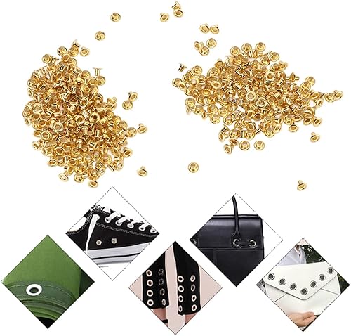 500 Pz 3.5mm/4.5mm/5.5mm Oro Doppio Occhiello Rivetto Cavo, Occhielli Rotondi in Metallo per Abbigliamento Fai da Te Borsa Tende Cintura Scarpa(4.5mm)