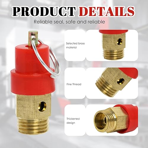 Valvola di sicurezza per compressore ad aria compressa G1/4, filettatura esterna 115PSI, pressione di regolazione rossa, cappello compressore, valvola di sicurezza, 1 pezzo
